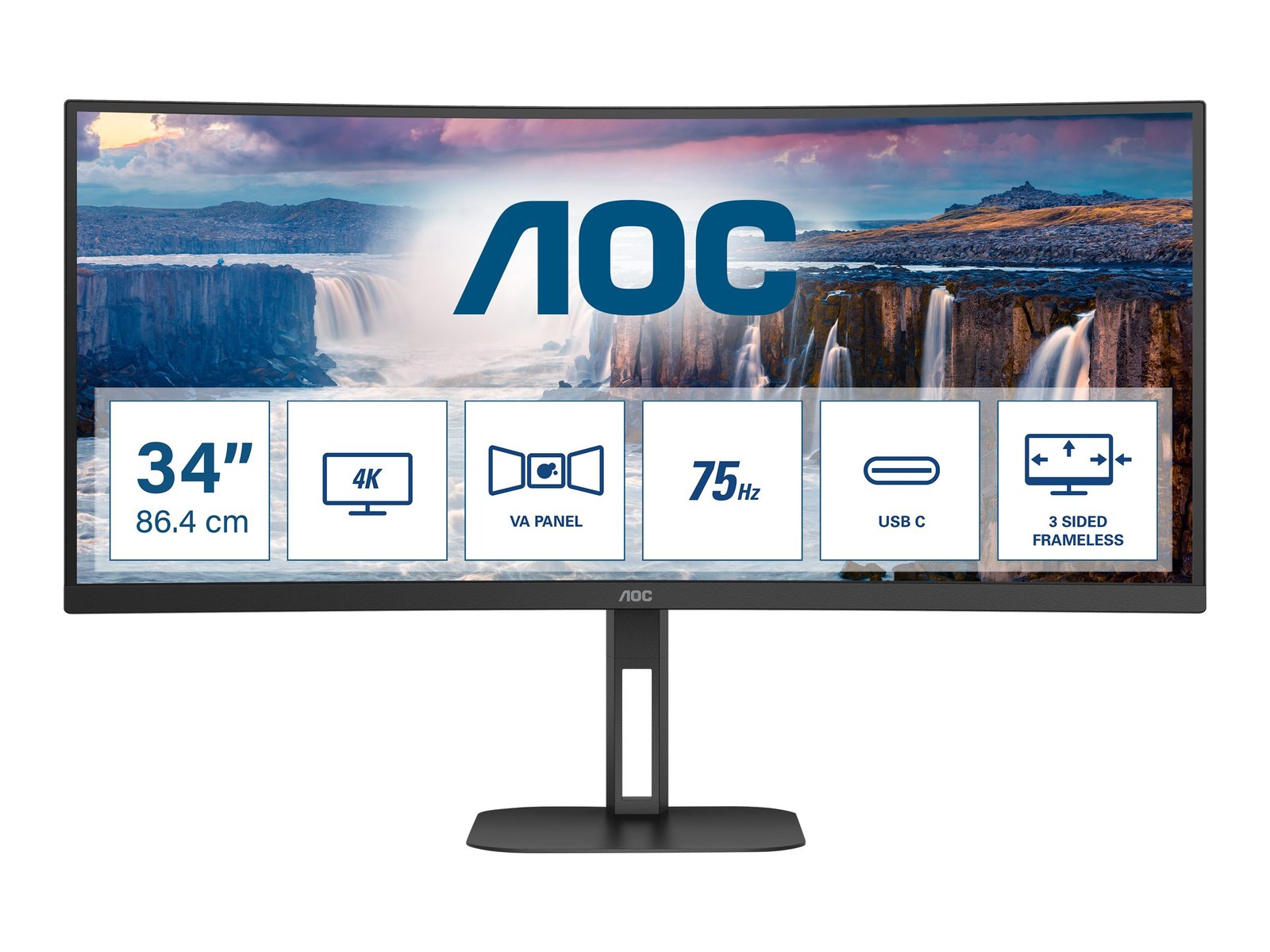 AOC | Curved Monitor | CU34V5C/BK | 34 ” | VA | WQHD | 21:9 | 100 Hz | 4 ms | 3440 x 1440 | 300 cd/m² | HDMI ports quantity 1