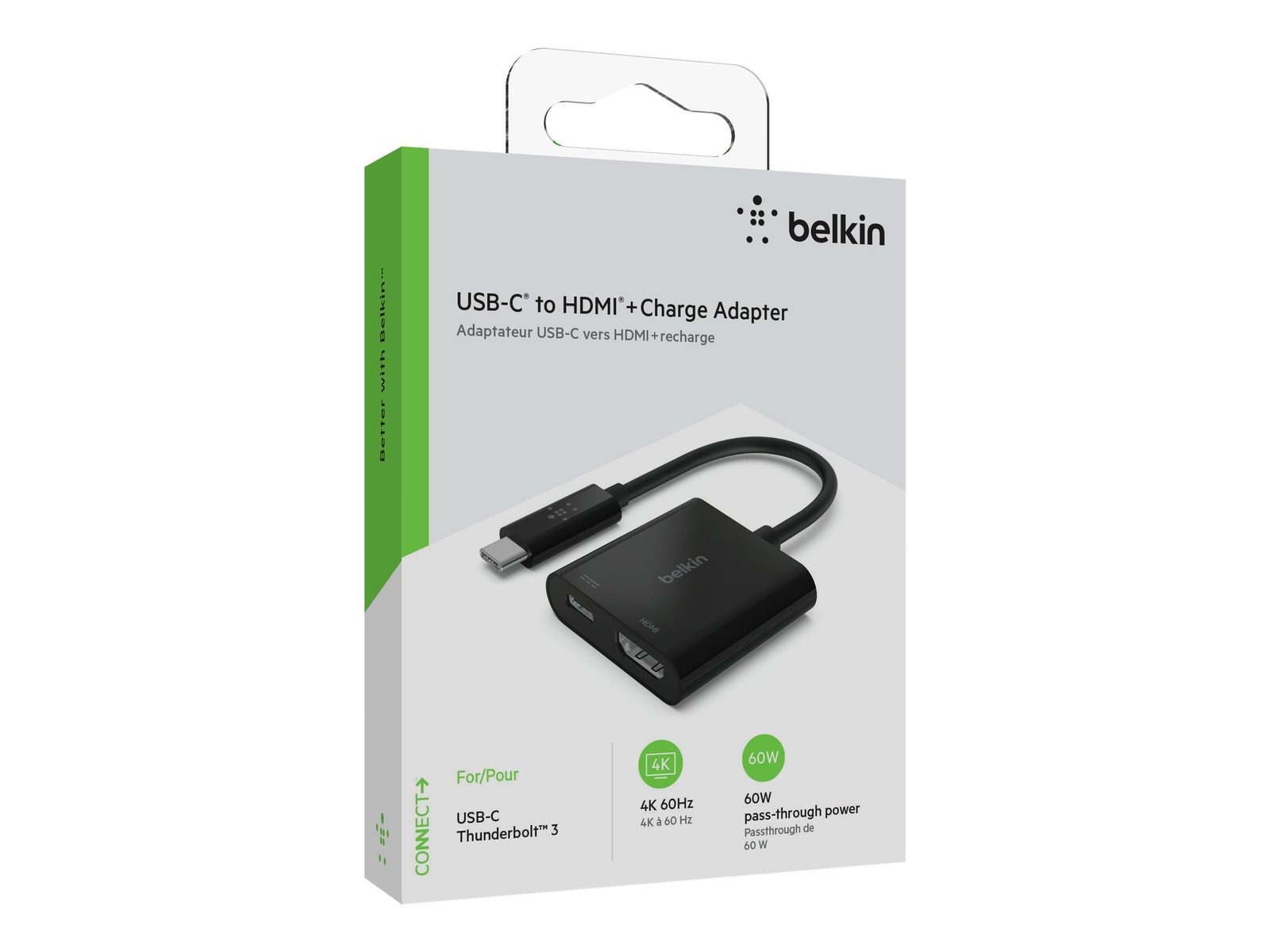 The USB-C to HDMI + Charge Adapter connects to your laptop or tablet via USB-C port, giving you both an HDMI port for video display and a USB-C port for power. Its plug-and-play design works universally with Mac and Windows laptops and other USB-C devices; You can keep your device charged while using your video display. Featuring pass-through USB Power Delivery up to 60W, your device will charge while displaying your content