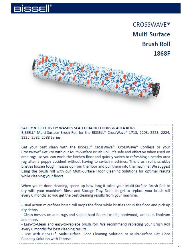 | Gamintojo prekės modelio pavadinimas | CrossWave Multi surface brush roll |