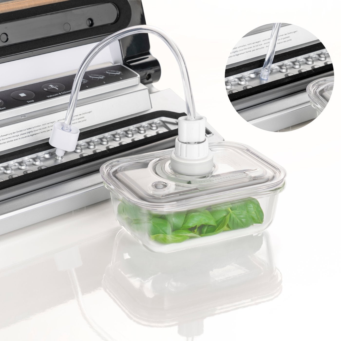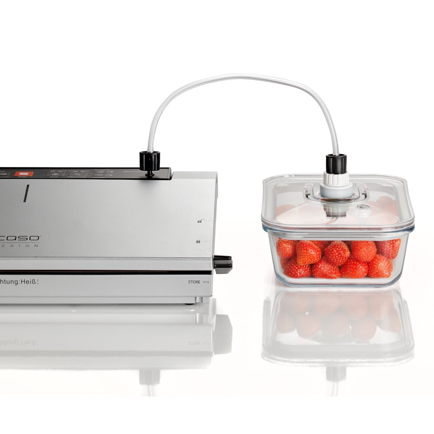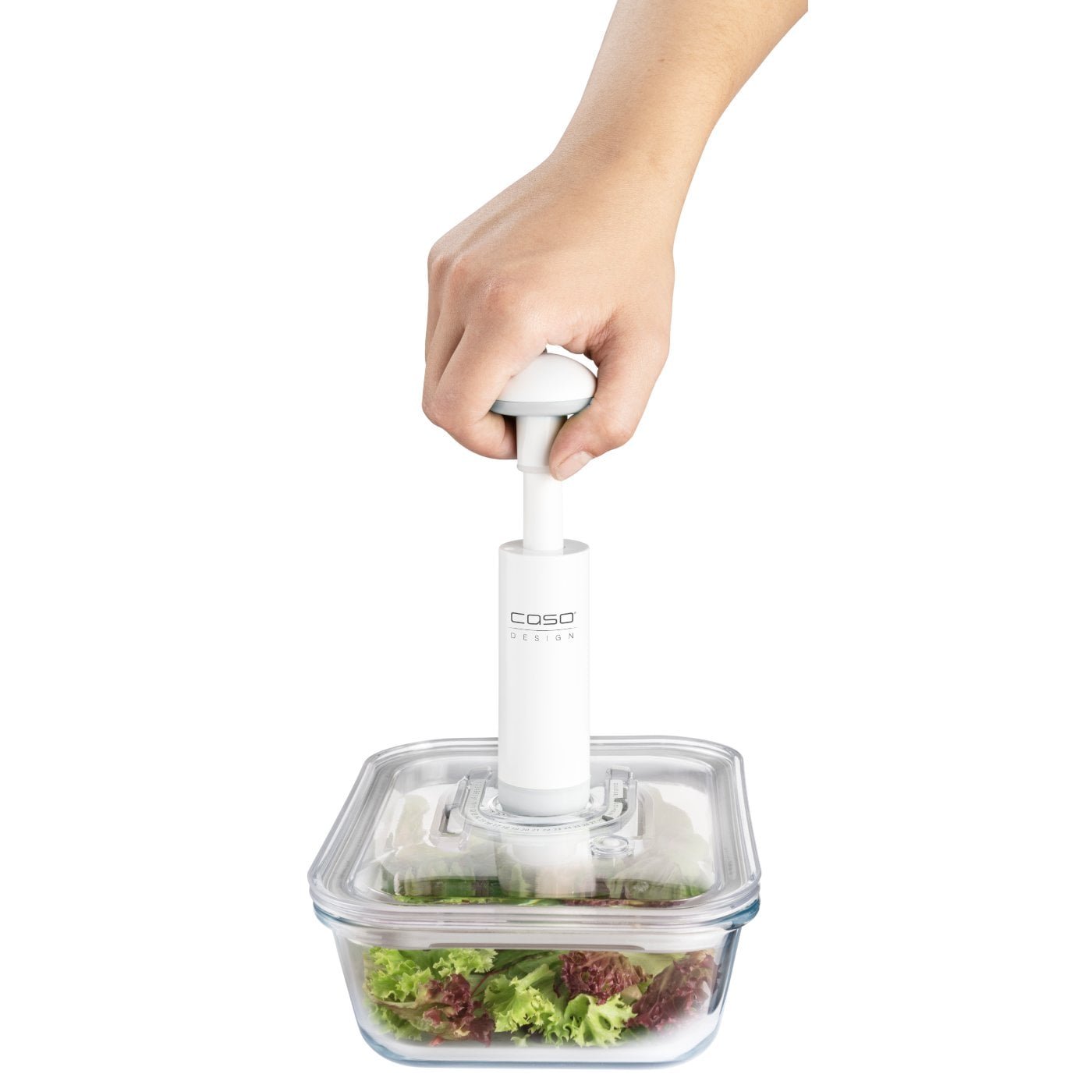 Long lasting freshness due to airtight closing with CASO vacuum hand pump or all CASO vacuum systems with container function and vacuum hose (supplied adapter requiered). Only usable with the CASO Design VacuBoxx-Containers.