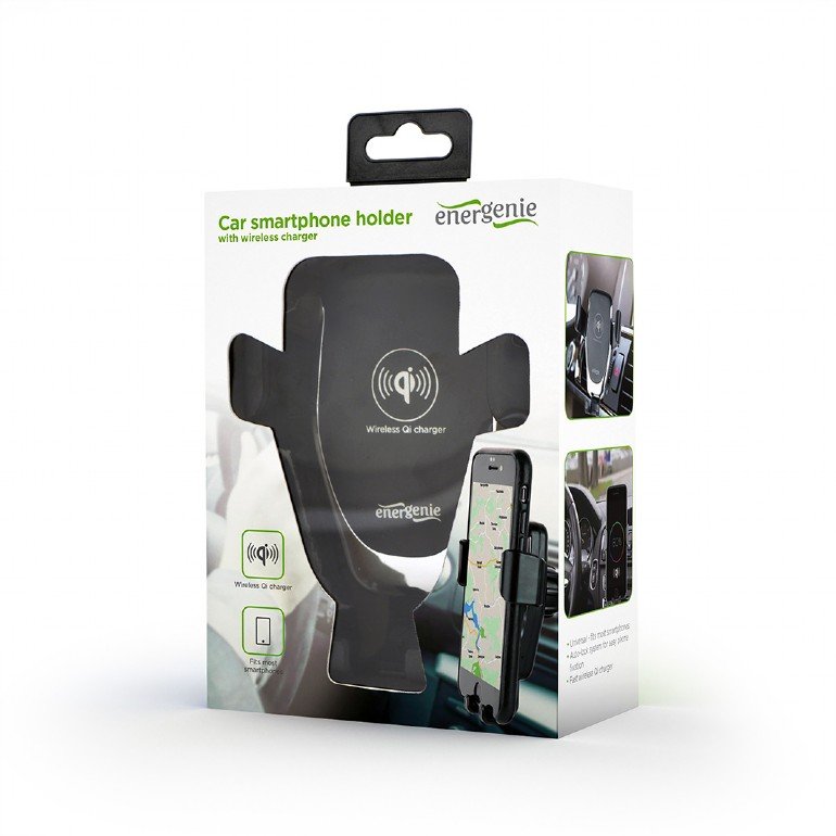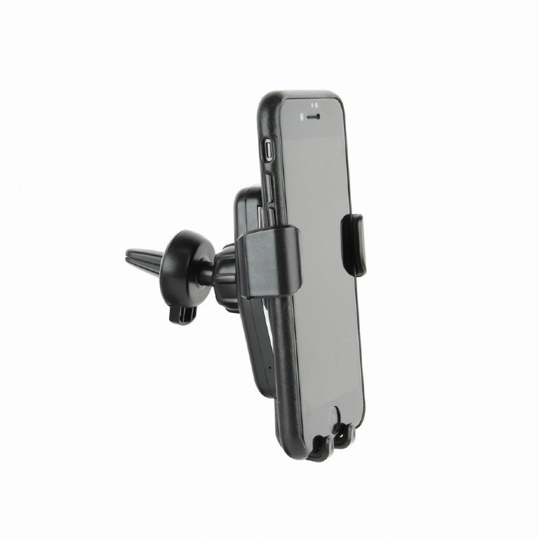 Universal smartphone car holder with built-in wireless Qi fast charger, 10 W fast wireless Qi charging function to charge your phone while driving, Practical auto-lock system, suitable for use with phones from 65 to 85 mm wide, Rotating/tilting phone holder with secure fixation on almost any air vent