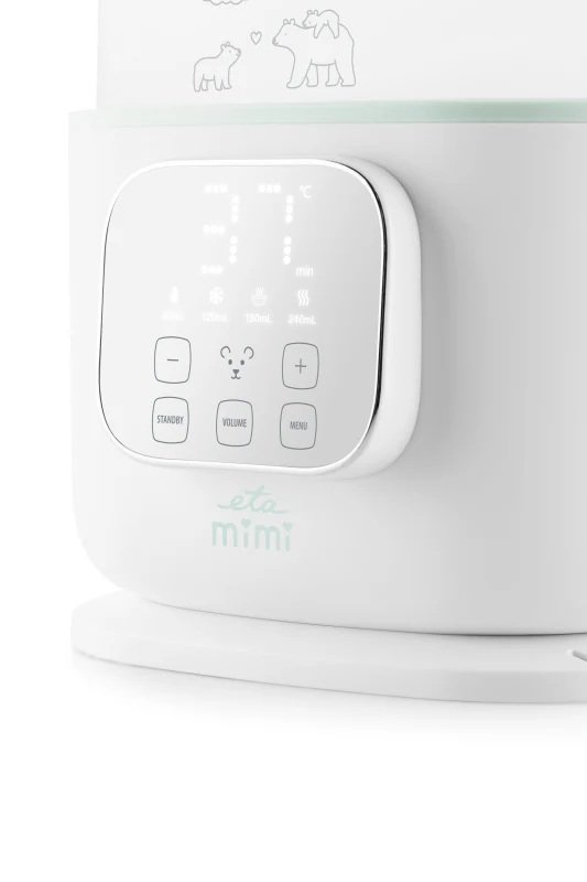 | Specialios funkcijos | Elegant touch control with LED display; 4 operating modes (warming, defrosting, baby food, sterilization); High-quality PTC heating element; Continuous temperature adjustment from 37–85 °C and 100 °C; Overheating protection in case of low water level |