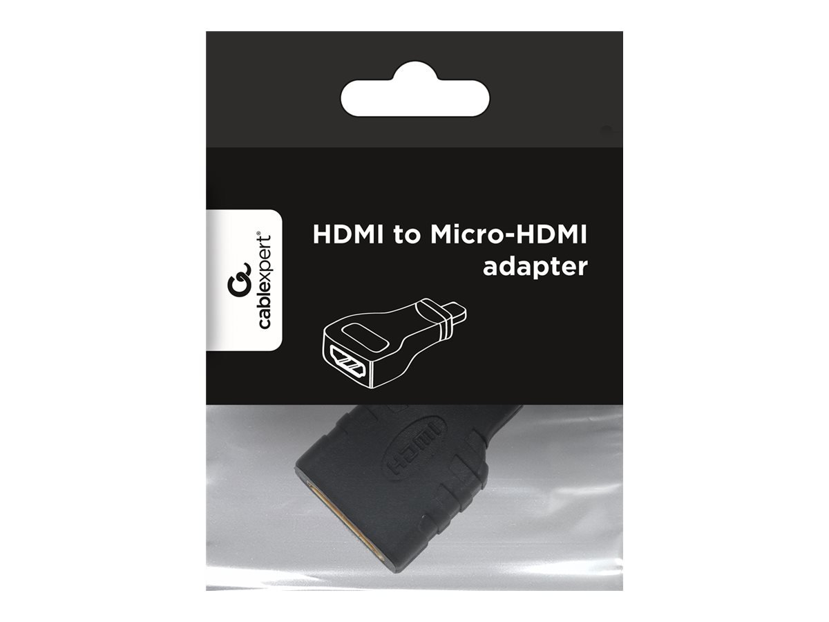 HDMI (A female) to micro-HDMI (D male) adapter; Gold plated contacts.