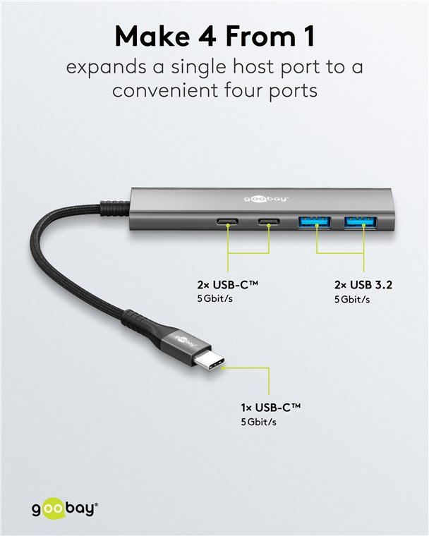 | Gamintojo prekės serija | Slim 4-Port USB Hub, USB-C to USB-C/USB-A, 5 Gbit/s |