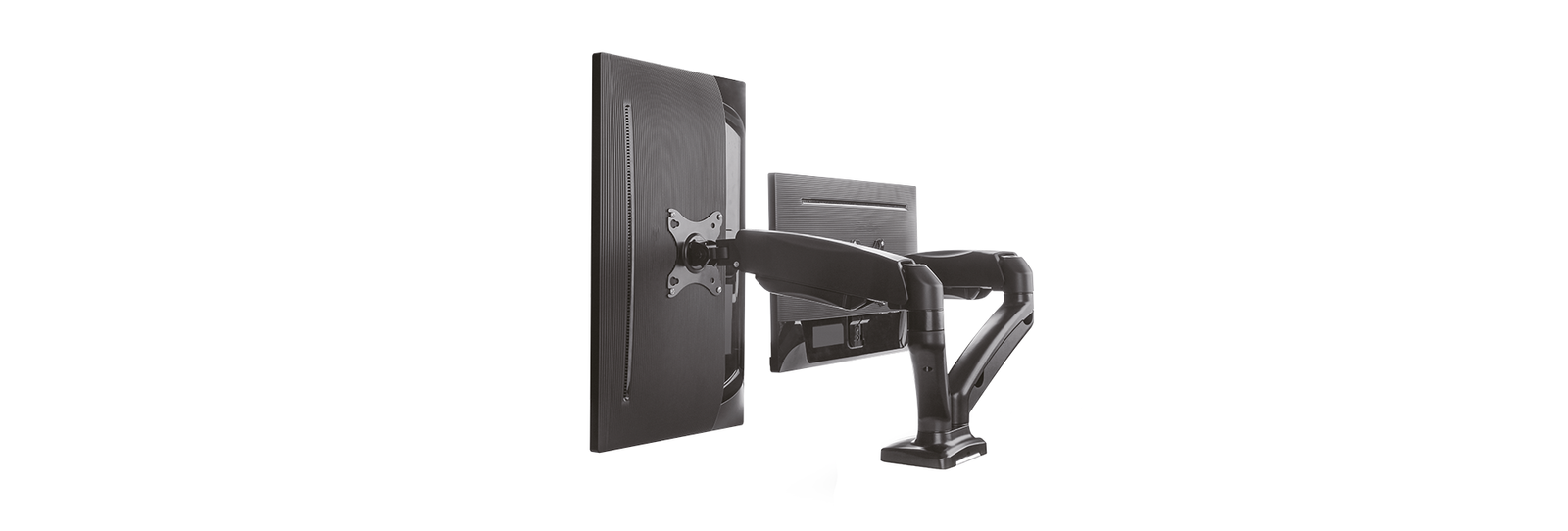 Features • Creates space on the desktop and provides a more flexible and productive workspace • Well-engineered design slim and ergonomic • Smart Torque Adjust™ built-in spring gauge can be adjusted to suit various monitor weights • Gas spring counterbalance moves the monitor with a light touch • Cable management routes cables under the arm to reduce clutter for a clean look • Grommet and desk mount base suit most desks with adjustable clamp height • Pear-shaped VESA® simplifies the mounting of the monitor • Supports 75×75 und 100×100 VESA® standards