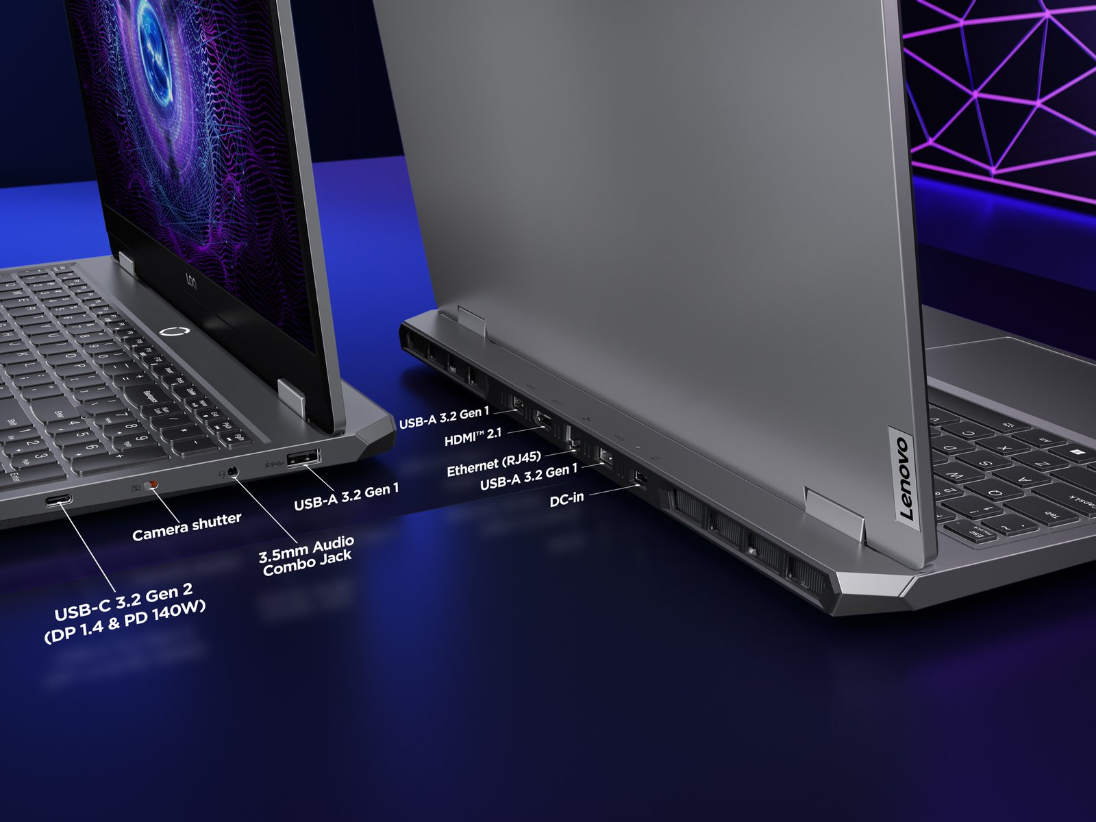 3x USB-A (USB 5Gbps/USB 3.2 Gen 1); 1x USB-C (USB 10Gbps/USB 3.2 Gen 2), with Lenovo® PD 140W and DisplayPort™ 1.4; 1x Headphone/microphone combo jack (3.5mm); 1x Power connector