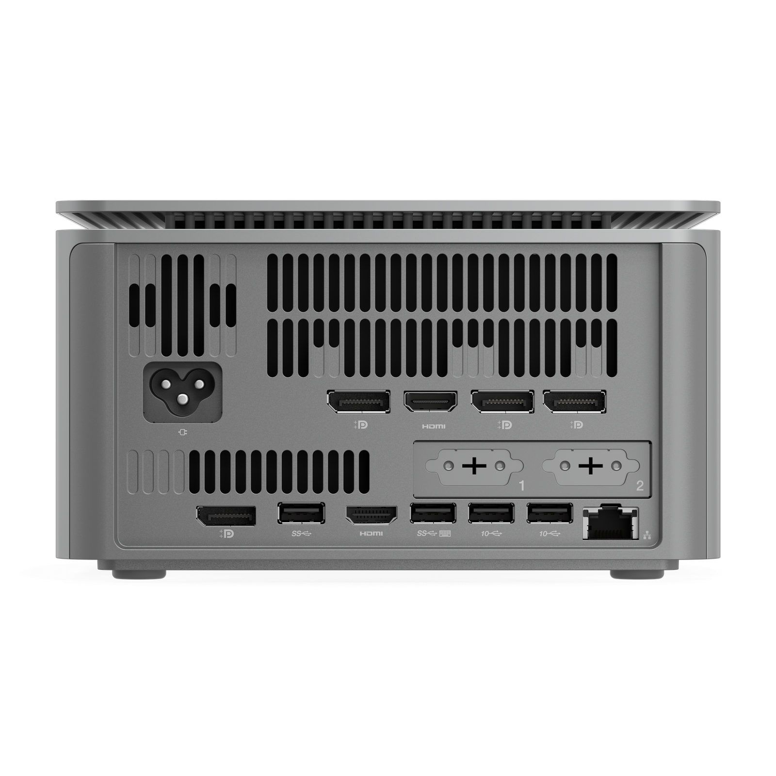 | I/O prievadai | Front Ports: 1x USB-C (USB 20Gbps/USB 3.2 Gen 2×2), data transfer only; 2x USB-A (USB 10Gbps/USB 3.2 Gen 2), one supports 5V@2.1A charging; 1x headphone/microphone combo jack (3.5mm). Rear Ports: 2x USB-A (USB 10Gbps/USB 3.2 Gen 2); 2x USB-A (USB 5Gbps/USB 3.2 Gen 1); 1x HDMI 2.1 TMDS; 1x HDMI 2.1a FRL; 4x DisplayPort 1.4a; 1x Ethernet (GbE RJ-45) |