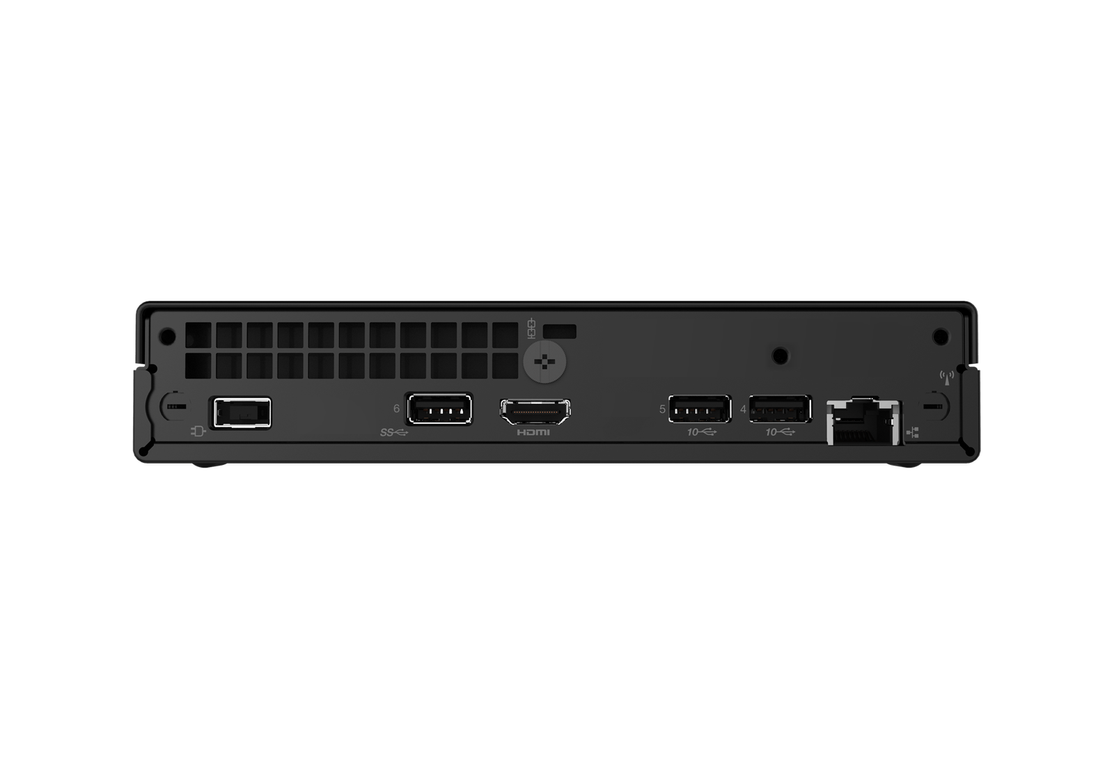 | Connections | Front Ports: 1x USB-C (USB 5Gbps/USB 3.2 Gen 1, for ThinkSmart controller); 2x USB-A (USB 10Gbps/USB 3.2 Gen 2); 1x headphone/microphone combo jack (3.5mm). Rear Ports: 2x USB-A (USB 10Gbps/USB 3.2 Gen 2, one for HDMI ingest dongle); 1x USB-A (USB 5Gbps/USB 3.2 Gen 1); 1x HDMI 2.1 TMDS; 1x Ethernet (GbE RJ-45) |