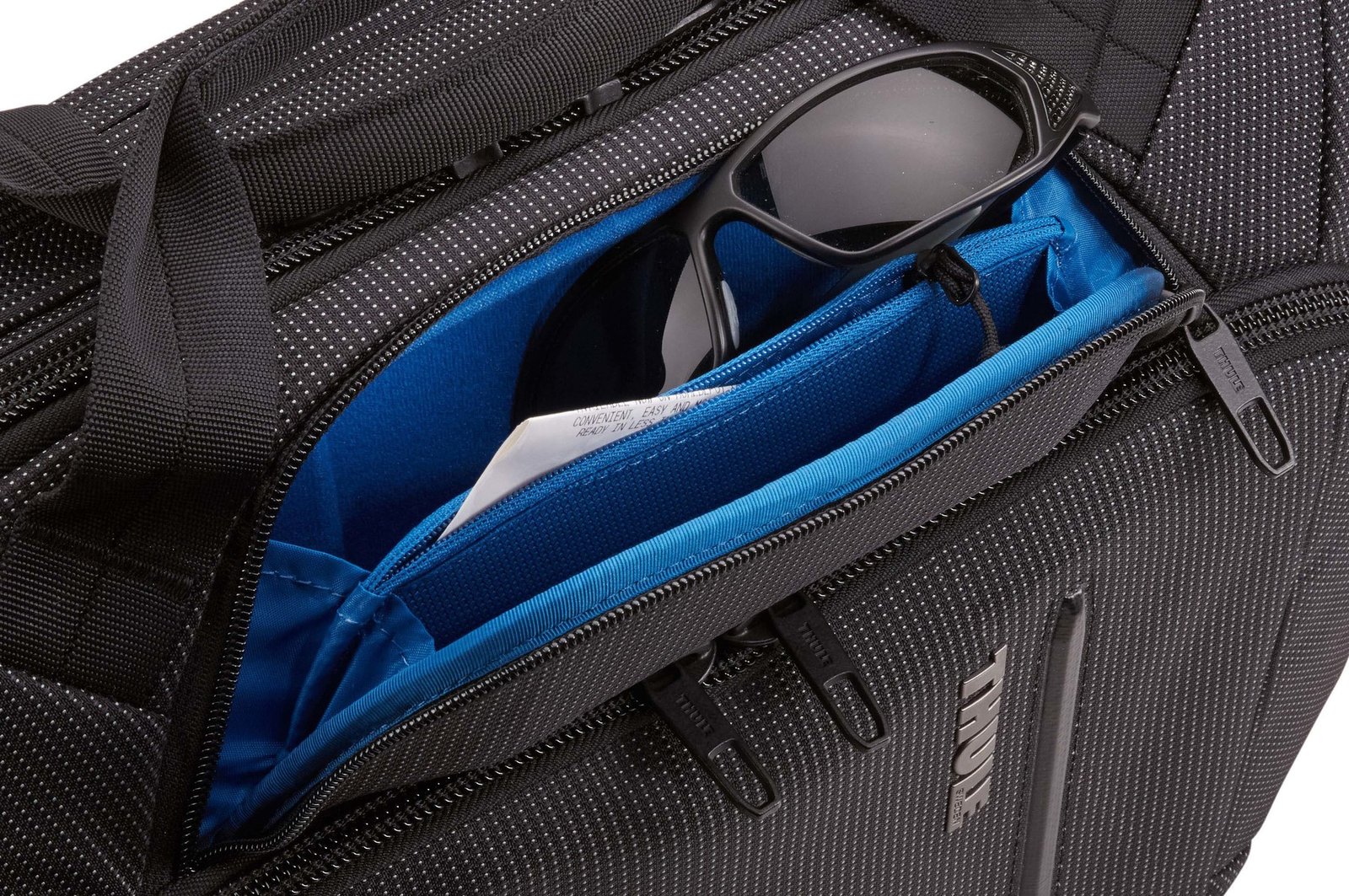 A functional laptop bag that expands 2.5″ for additional space and protects everything from electronics to identity.