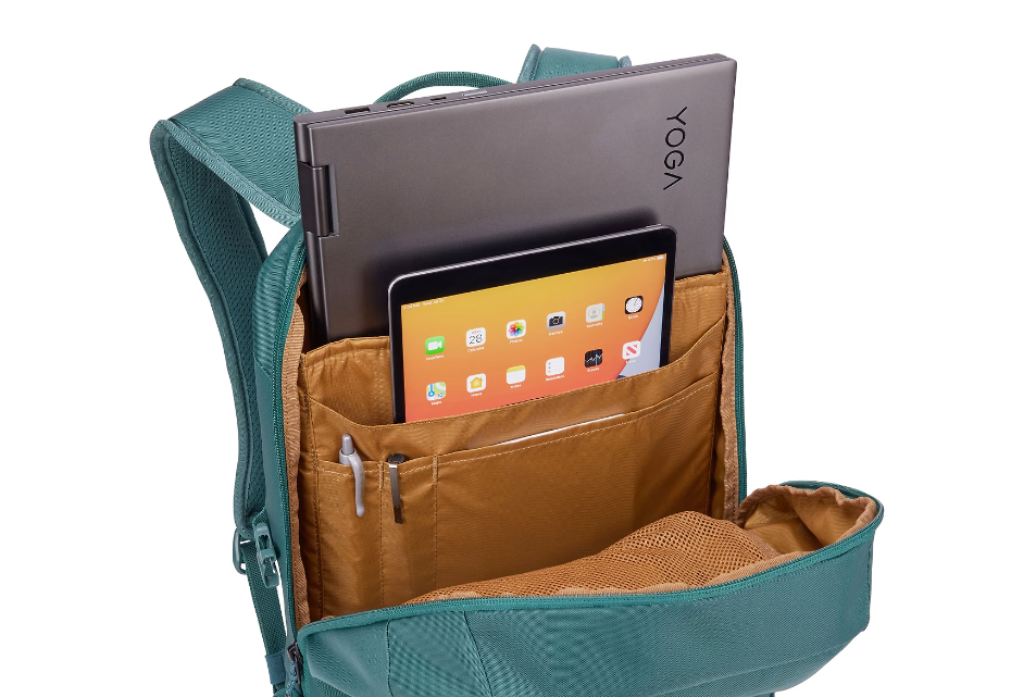 Elevated, dedicated pockets protects up to a 15.6 laptop and up to a 10.5″ tablet; Roomy zipped mesh pocket stretches to add volume to store electronic accessories and other personal items; Mesh exterior side pocket allows you to store a water bottle quickly; Dedicated interior pockets make it easy to store small accessories and pens