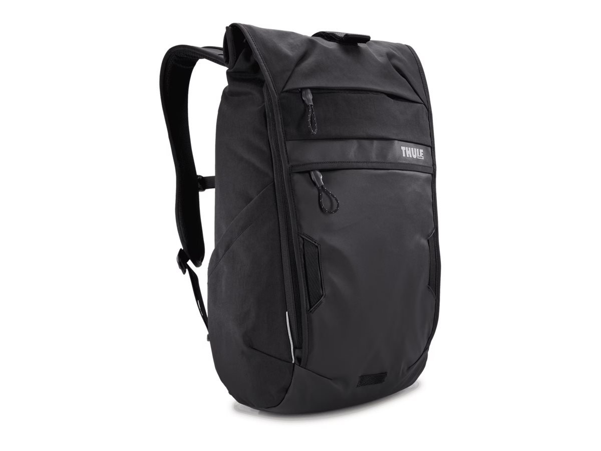 Thule Paramount 18L commuter backpack is a streamlined, expandable backpack made for every day use – both on and off the bike; Roll-top closure and durable, coated materials provide reliable weather protection; Access your phone easily from dedicated pocket while in riding position; Unzip side panels to expand capacity up to 50%, transitioning streamlined bag into high-capacity urban cargo hauler; Stay visible in low light with reflective accents visible from all angles