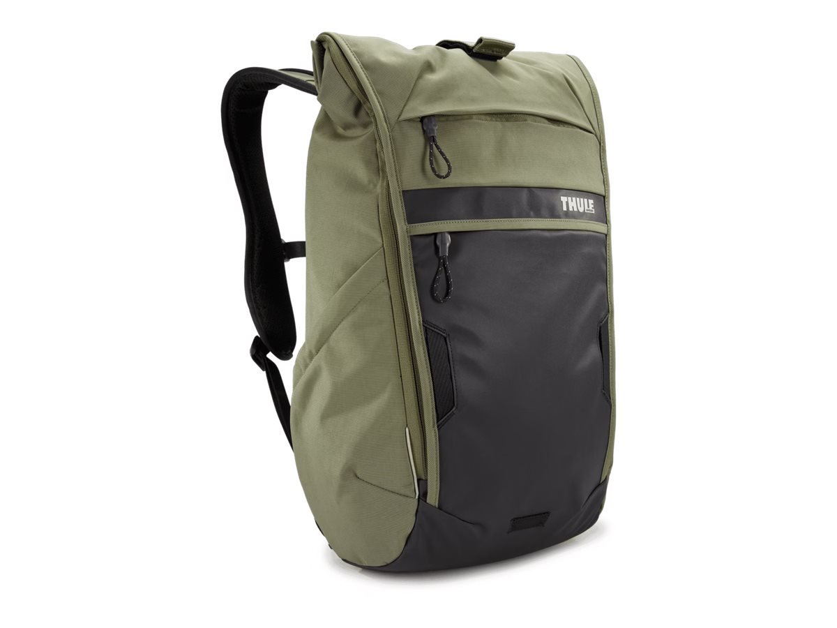 Thule Paramount 18L commuter backpack is a streamlined, expandable backpack made for every day use – both on and off the bike; Roll-top closure and durable, coated materials provide reliable weather protection; Access your phone easily from dedicated pocket while in riding position; Unzip side panels to expand capacity up to 50%, transitioning streamlined bag into high-capacity urban cargo hauler; Stay visible in low light with reflective accents visible from all angles